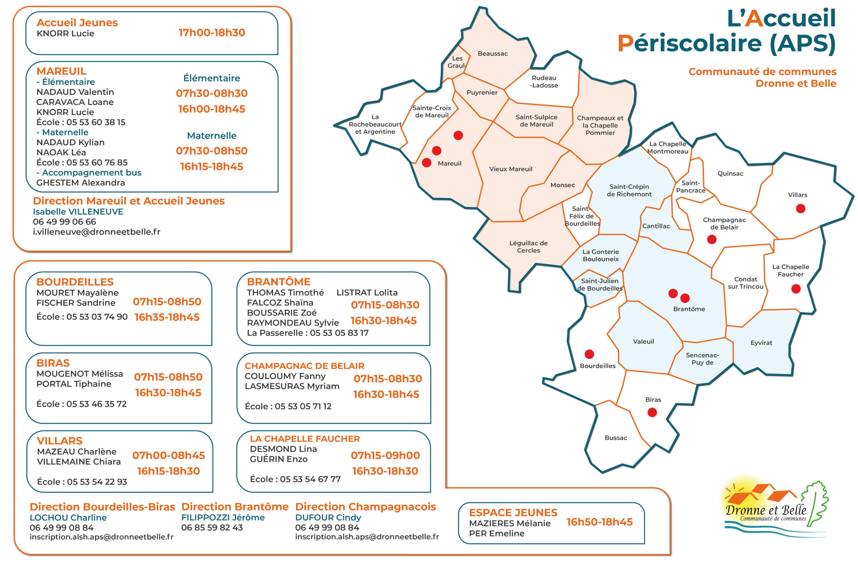 Mareuil (maternelle) : 7h30 – 8h45 et 16h15 – 18h45